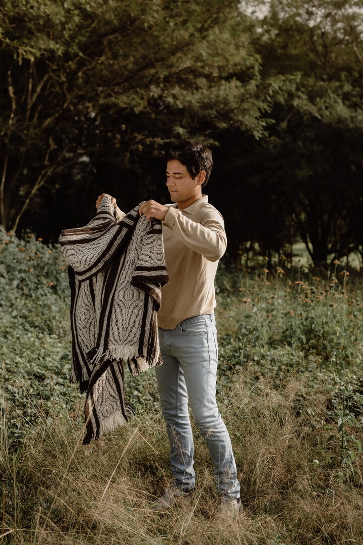 A genuine 100% wool poncho handmade by locals in Ecuador. The ponchos are for both men and women and contain no dyes. The colors are the exact colors of the fur.